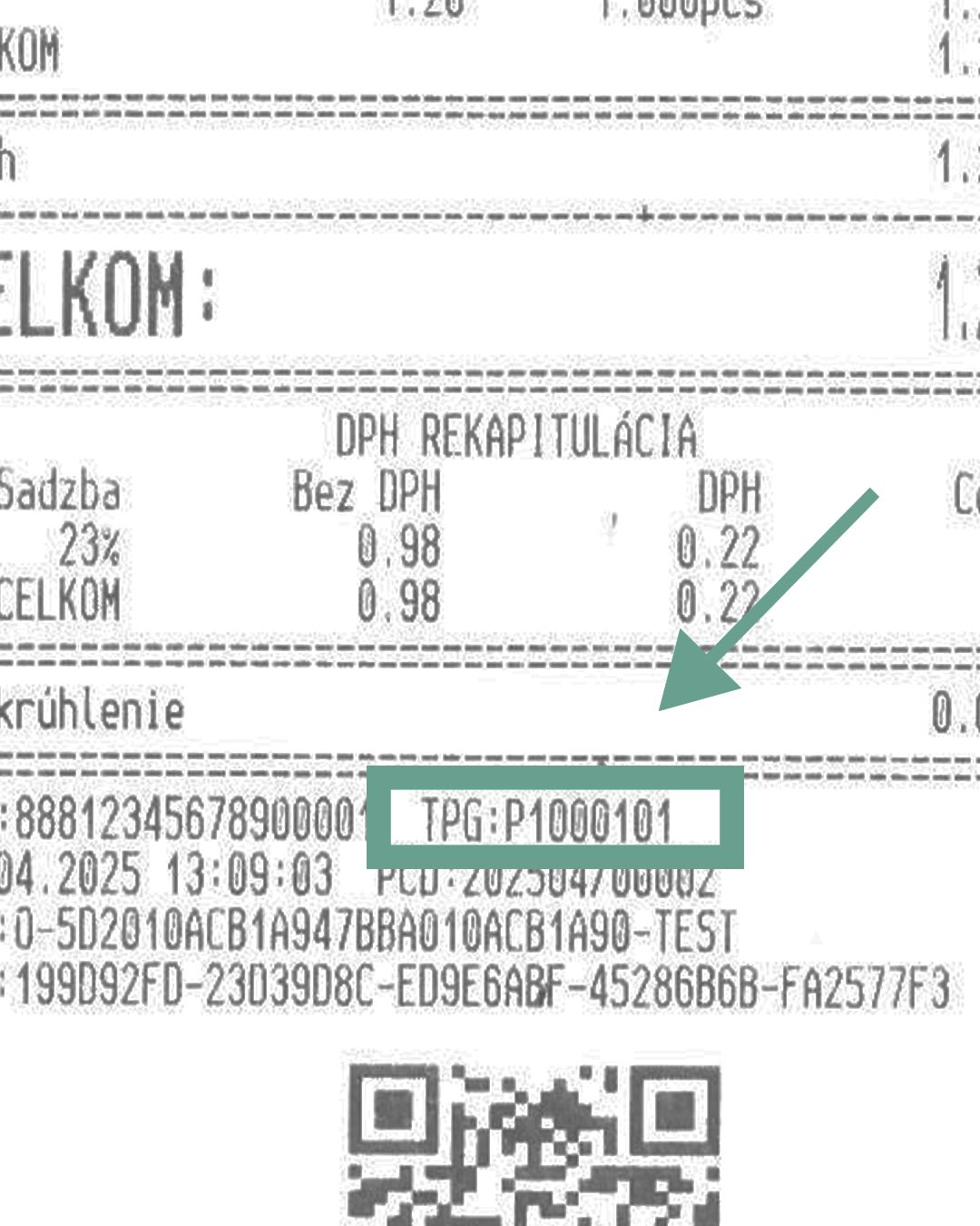 - podľa sériového čísla CHDÚ – tlačí sa na každom doklade ako napríklad „TPG: B10000123“